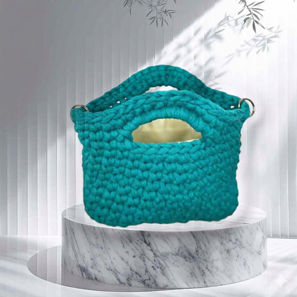 Sac moderne et entièrement fait à la main en tee-yarn doux et épais.