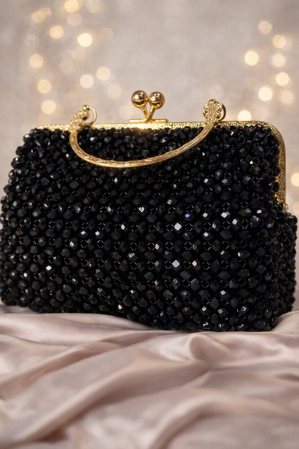 ✨ Sac de soirée fait main en crystal noir et émeraude